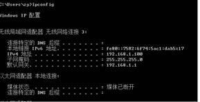 开始>收索程序和文件(打cmd)>在打ipconfig