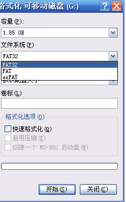 b、选择下拉列表的“FAT32”,单击“开始”即可转换为FAT32格式。