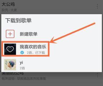 5、会出现“下载到歌单”的对话框,我们点击第二项“我喜欢的音乐”文件夹中;