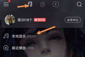2.在主界面上方选择三个图标中左边的那个,进入本地歌曲。