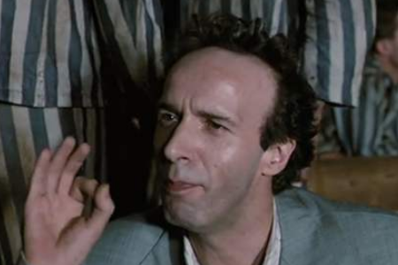 Guido通过喇叭放奥芬巴赫的歌剧《霍夫曼故事》中的《威尼斯船歌》,而事实上因为奥芬巴赫是犹太人,所以在纳粹集中营很难找到他的音乐。