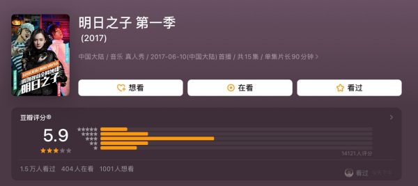 7、明日之子 第一季 推荐指数:★★★