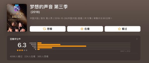 15、梦想的声音第三季 推荐指数:★★★