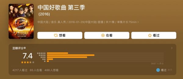 10、中国好歌曲 第三季推荐指数:★★★