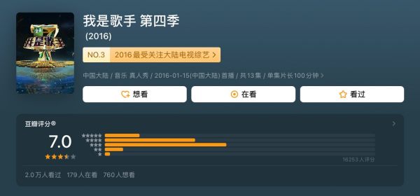 4、我是歌手 第四季推荐指数:★★★★