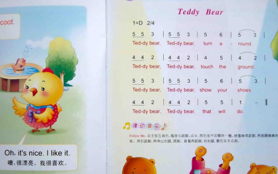 在歌曲的开头,节奏可能会慢一些,因为对于一个孩子来说,以连贯的方式做一系列的动作是不容易的。当孩子们协调他们的动作时,他们唱得越快,就越有趣。在幼儿英语启蒙阶段,很容易调动孩子的参与感和学习热情。