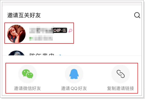 4、可以邀请互关好友,或者直接发送给QQ、微信好友,还可以复制邀请链接。