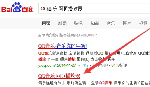 一、首先我们百度搜索“qq音乐网页播放器”,如下图所示;