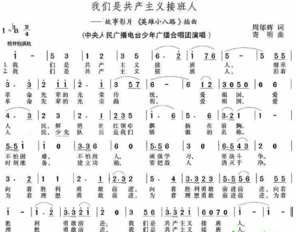 《我们是共产主义接班人》歌谱