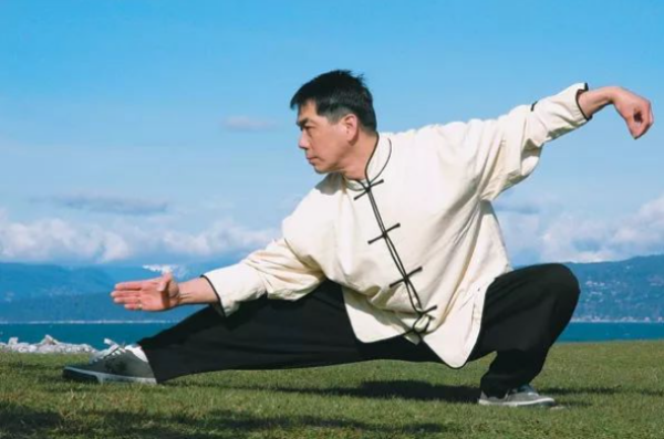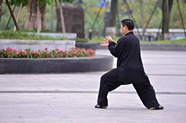 2、左右野马分鬃:野马分鬃抱球起,一前一按斜上举。弓步向前似猫行,虚实转换要清晰。