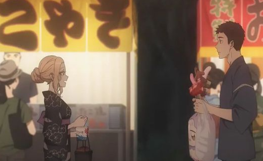 最后一集中,喜多川和五条去看烟花,看完烟花回去的时候喜多川的脚被勒的出血,平时不经常穿木屐就会这样,于是五条只能把她背回去。本来来的时候高高兴兴,没想到回去一言难尽,喜多川决定来年的时候要注意这点,潜台词就是明年还要约五条一起看烟花。