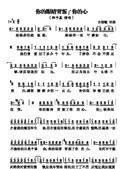 《你的眼睛背叛了你的心》是收录在音乐专辑《左右为难》中一首流行国语歌曲,由香港艺人郑中基演唱,古倩敏作词作曲。