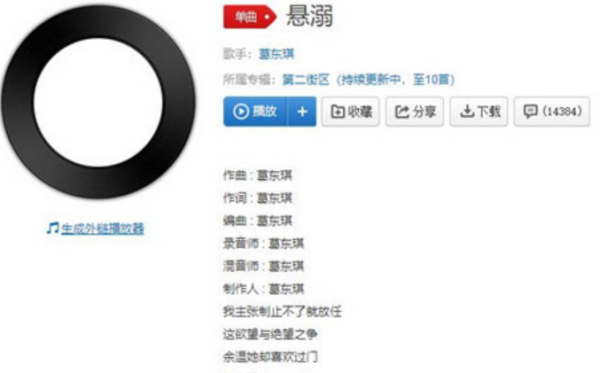 是歌手葛东琪原创的一首歌曲,发行于2019年的10月18日,并收录在葛东琪同年发布的专辑《悬溺》中,歌词非常的好记,搭配上悠长的曲调,让这首歌充满了忧郁的风格,更是引起了不少网友们的热议,这首歌也是在抖音中彻底爆红了。