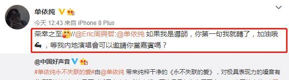 作为浙江音乐学院的大一新生,单依纯的音乐实力在张口唱《永不失联的爱》的第一句就已经完全展现出来了,完全没有特意用技巧展示,节目播出之后,就连这首歌曲的原唱周兴哲都在微博上赞叹她的实力!