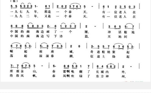 歌词讲了春天的故事,春天的故事,春天的故事,一九七九年那是一个春天,有一位老人,在中国的南海边画了一个圈,一九七九年那是一个春天,有一位老人,在中国的南海边画了一个圈,神话般地崛起座座城。