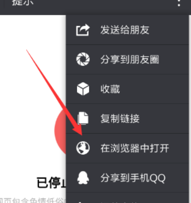 2、但是显示已停止访问该网页,我们点击页面右上角的三点。