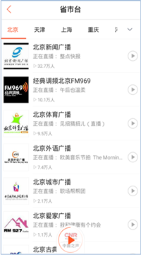 如果要听省市台节目的话呢,点开“省市台”的分类,页面上方会显示很多的地方,比如北京、天津、上海等等,选择好你要听的地方台的地域之后,就可以更方便您查找要听的电台了哦~