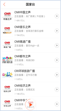 比如说我们要听CNR中国之声的话,点开“国家台”这个分类,找到“CNR中国之声”点击播放就可以在线听直播啦~