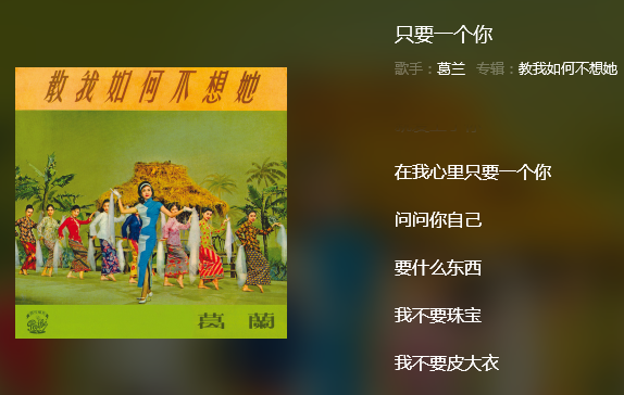 2、由歌手黄金佑演唱的歌曲《只要一个你》,收录于专辑《相思为了你》中,由Ling Sheng发行于2015-10-27,该专辑中共包含8首歌曲。