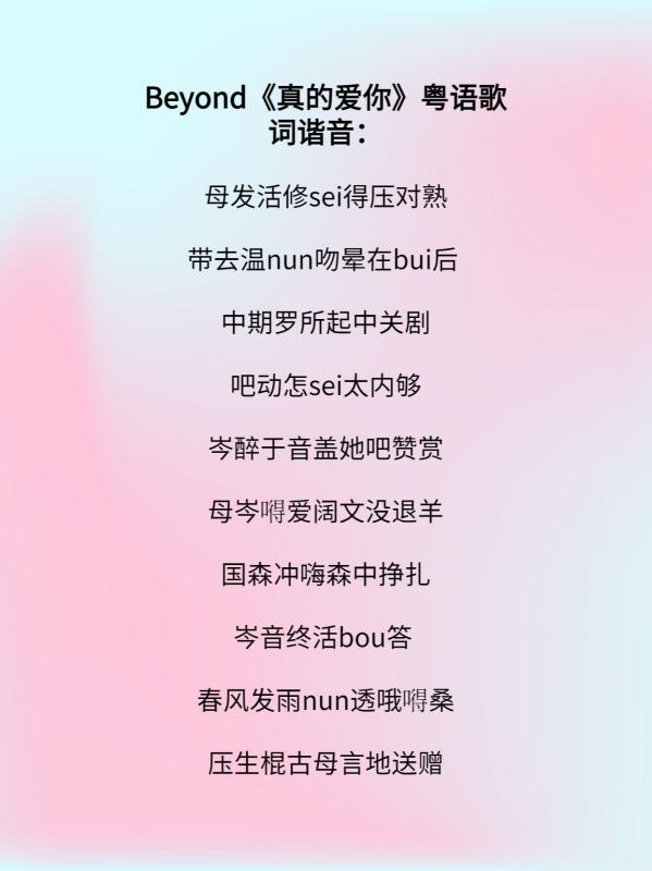 Beyond《真的爱你》粤语歌词谐音: