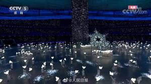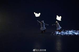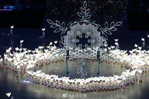 在开幕式的《雪花》篇章里,几百个孩子手持和平鸽形状的道具灯,在鸟巢中无拘无束地起舞、游戏,一曲童声合唱的《雪花》悠扬清澈,天真动人。
