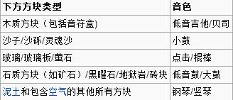 同时将音符盒放在不同的材料的方块上面可以改变音色:
