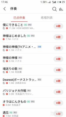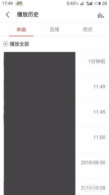 4、打开后,该界面中就是最近听过的歌曲列表了,最多只能保存最近听过的100首歌曲。