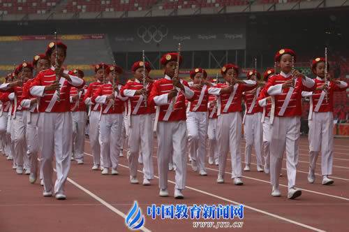 ⒊少先队鼓号队的排列顺序是:旗手,护旗手,指挥员、号手、大鼓手、镲手、小鼓手。