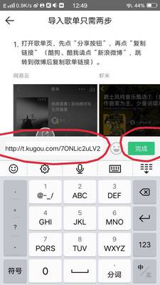 11、复制刚才的酷狗音乐歌单链接,然后点击完成。