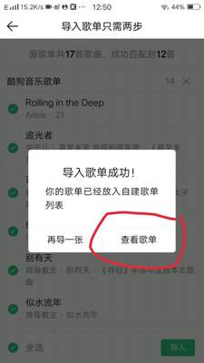 16、这里就可以查看刚才从酷狗音乐导入过来的歌单里面的全部音乐了。