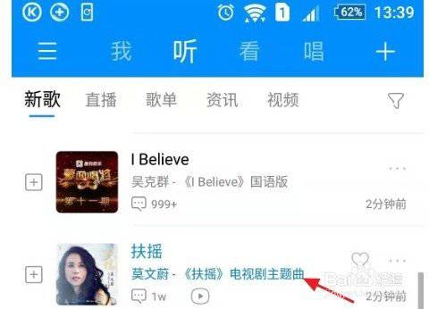 进入到酷狗音乐首页后,我们选择自己喜欢的音乐,点击播放。