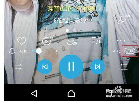2,打开歌曲播放页面后,点击页面如图所示的倍速播放。