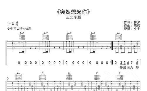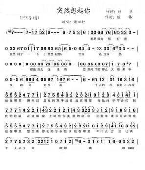《突然想起你》简谱