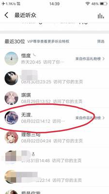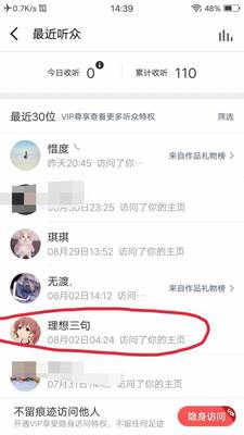 第三步、这里会显示最近听过自己歌的人,打开其中一个想关注的好友。
