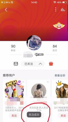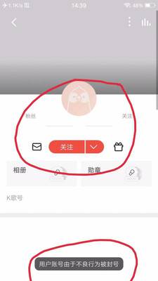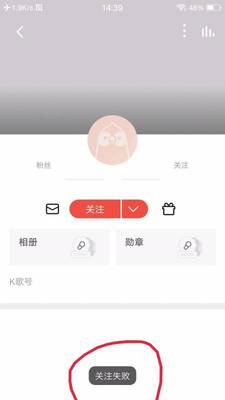 第五步、这里会显示关注失败,被全民K歌系统封号的账户是关注不了。