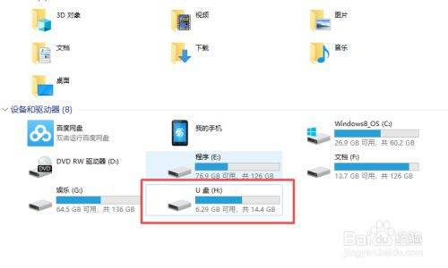然后我们看到U盘已经显示在此电脑里面了,如图所示,我们双击打开这个U盘;
