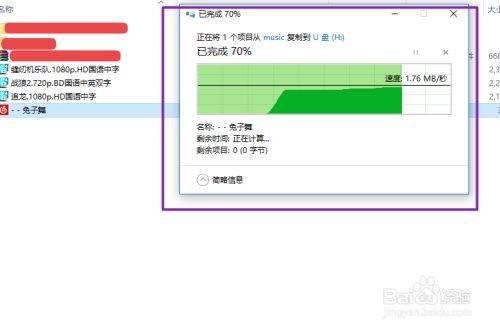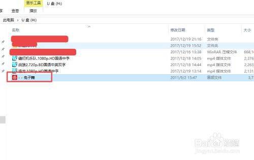 粘贴完成后,就将下载的歌曲放入U盘里了,如图所示。