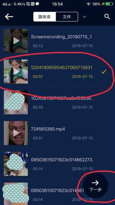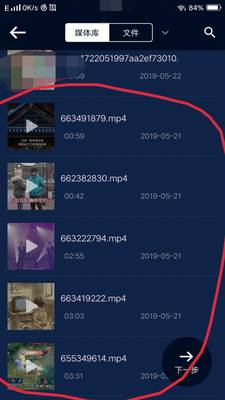 第十步、找到刚才下载好的快手视频,点击下一步,。