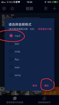 十二步、这里需要选择音频格式,选择好后点击确定。