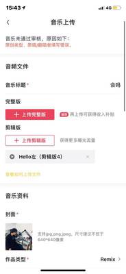 抖音音乐人音乐审核不通过原因原创类型翻唱者填写错误【提问】