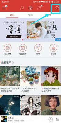 1、手机打开网易云音乐,然后点击搜索歌曲。