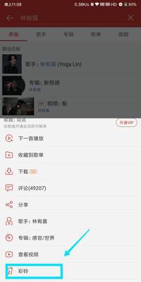 4、在弹出的菜单页面选择彩铃即可完成设置
